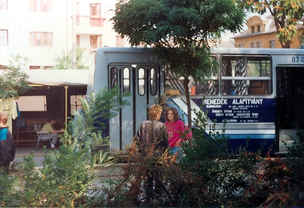 Ózdon a Gyújtón álltunk a parkolóban, ott volt akkor a Tea-busz bázisa a FAMISZ-nak. Itt vehettük meg az első Menedékes póló alapanyagát. Kedvező ára volt: 70 Ft/db. Ezért is hálát adunk az Istennek! Innen Ózdról jelentkezett egy lány – önkéntesként egy évi szolgálatra. Örömmel le is töltötte a vállalt idejét.