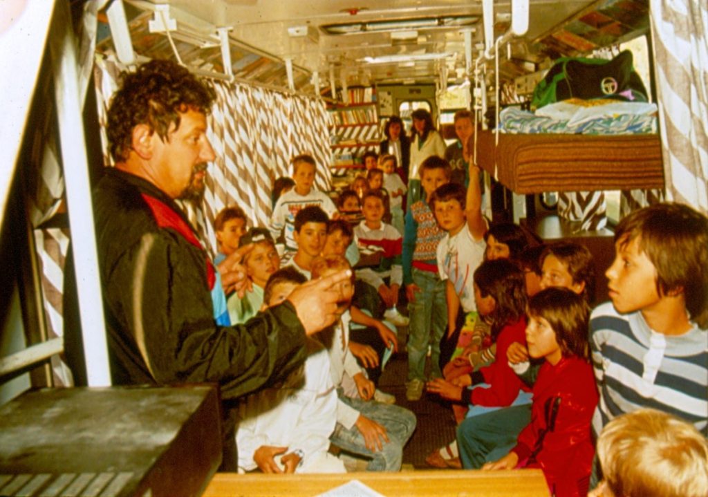 A Teabusz egyfajta utcai szolgálat volt. Asztalokkal, eredeti ülésekkel, ágyakkal, kiskonyha gáztűzhellyel, átalakított belső berendezéssel, függönyökkel; külső feliratokkal, TV-vel, videóval, társasjátékokkal, könyvekkel, gördeszkával és a legfontosabb: Bibliákkal.
